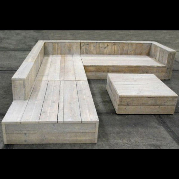 Unwind and relax in our super stylish corner sofa made from reclaimed scaffold boards, a perfect addition to any garden space this summer. This sofa features handy storage in the seats, great for storing cushions, garden games or anything else you may need. Expertly crafted by our carpenters here in London and finished with a clear matt varnish to ensure protection against the elements and to give a lovely finish to bring out the natural character of the wood.