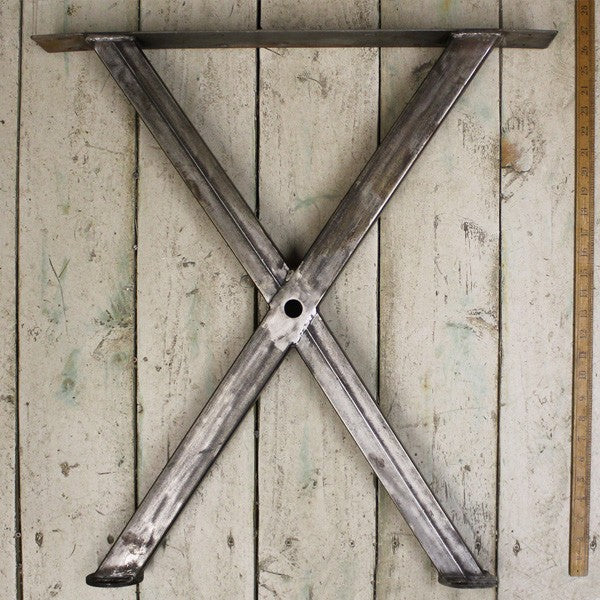 A mild steel cross shape table underframe. Measures approx. 710mm high. Price is per end. Connecting rods are sold separately.