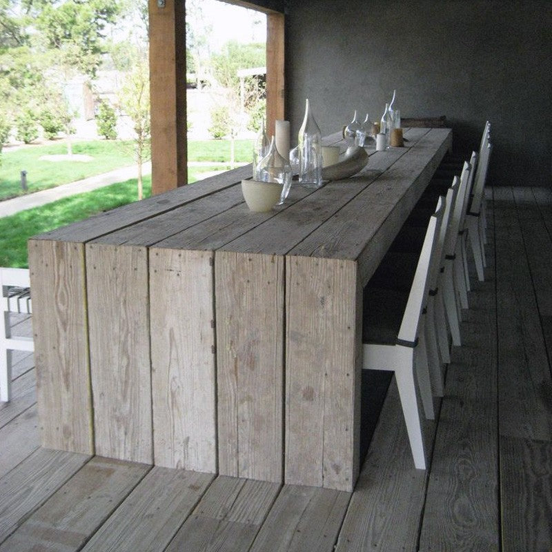 Bored of the usual patio tables you see everywhere? Want something different? Look no further than our stunning wooden patio tables made from reclaimed scaffold boards. Expertly crafted by our carpenters here in London, and available in three sizes to suit all spaces. All our outdoor furniture is finished with a clear matt varnish to ensure protection against the elements and to give a lovely finish to bring out the natural character of the wood.
