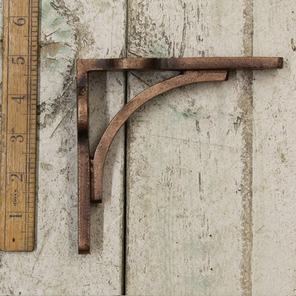 An antique copper shelf bracket measuring approx. 130mm down one side and 122mm down the other. Perfect for creating your own shelves with our stunning reclaimed scaffold boards.
