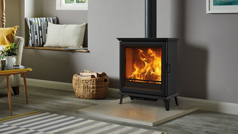 Continuing the Sheraton range’s period styling, the Stovax Sheraton 5 Wide multi-fuel log burner offers a more expansive flame view than the 5, with a slimmer depth – whilst still providing a 5kW heat output suitable for standard room sizes. With external riddling for burning approved smokeless fuels, this multi-fuel stove is also capable of burning logs. Featuring bevelled door frame with matching cornicing to the cast iron top and bottom.